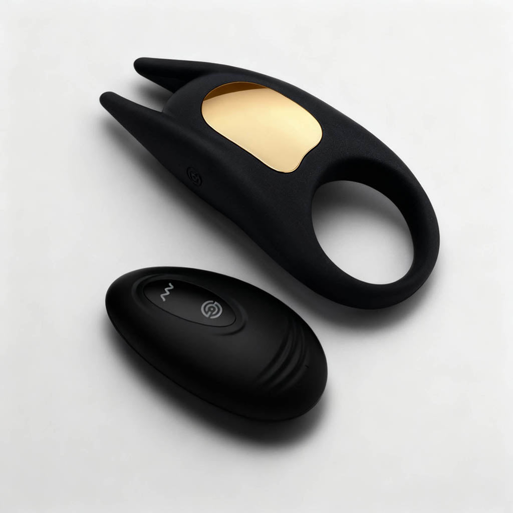 Meet Lucas 2, the cock ring designed to keep you harder for longer while delivering toe-curling vibrations for both you and your partner. Its snug black and gold silicone ring traps blood flow in your shaft, so your erection stays firm and full for extended play. Lucas 2’s dual pointed ears and ribbed underside work their magic on your partner’s most sensitive spots (especially if they have a clit), sending deep, rumbly vibrations exactly where they’re needed.