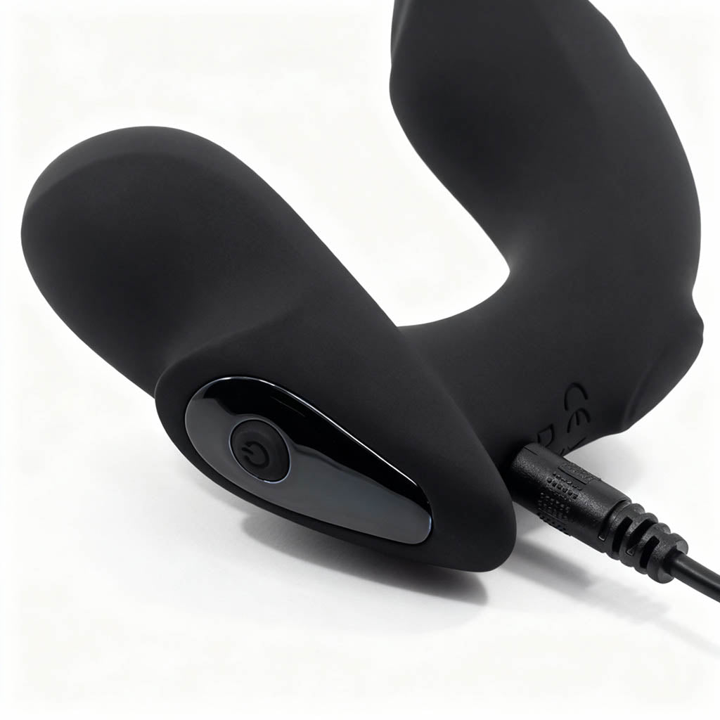 3. Press the top button of the remote control to cycle through vibration modes. To control the P-spot tapping speeds, press the bottom button.