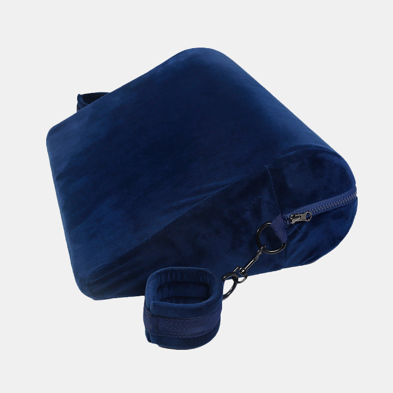 The Captive is a discreet yet powerful sex positioning tool designed to elevate the hips, support the back, and restrain the arms, all in one smooth setup. Its gorgeous blue velvet exterior feels luxurious against the skin, while the built-in cuffs on each side turn this elegant pillow into a seductive restraint system. The angled incline boosts access and penetration depth, making every position feel more intense and effortless. Whether you're experimenting with submission, edging, or sensual control, this pillow keeps your partner perfectly positioned and deliciously helpless.